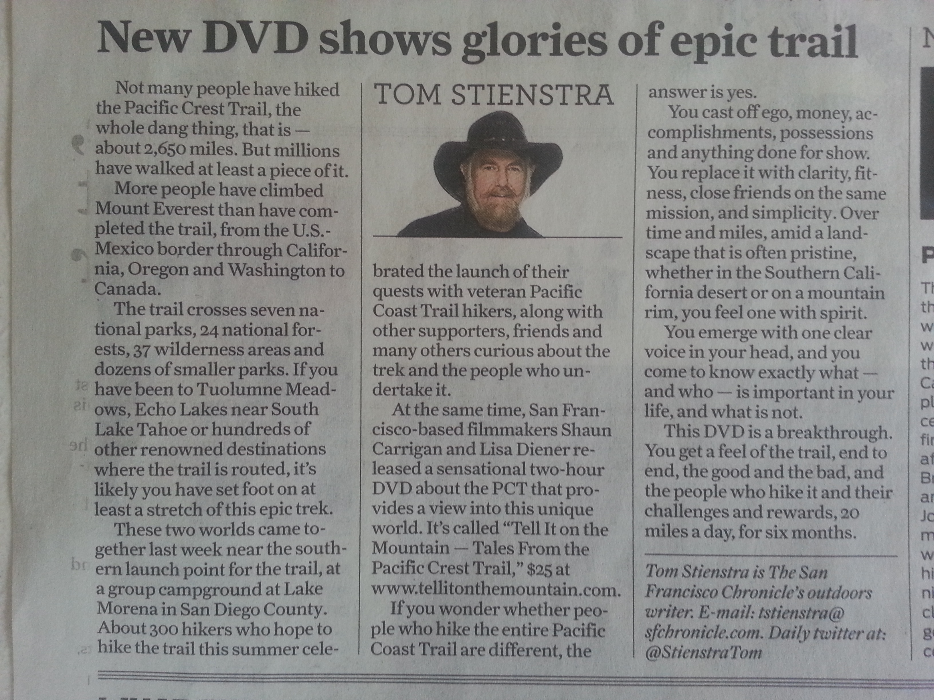 Tom Stienstra at the SF Chronicle featured the film in his column today. He called it “sensational” and “a breakthrough”. Thank you Tom!